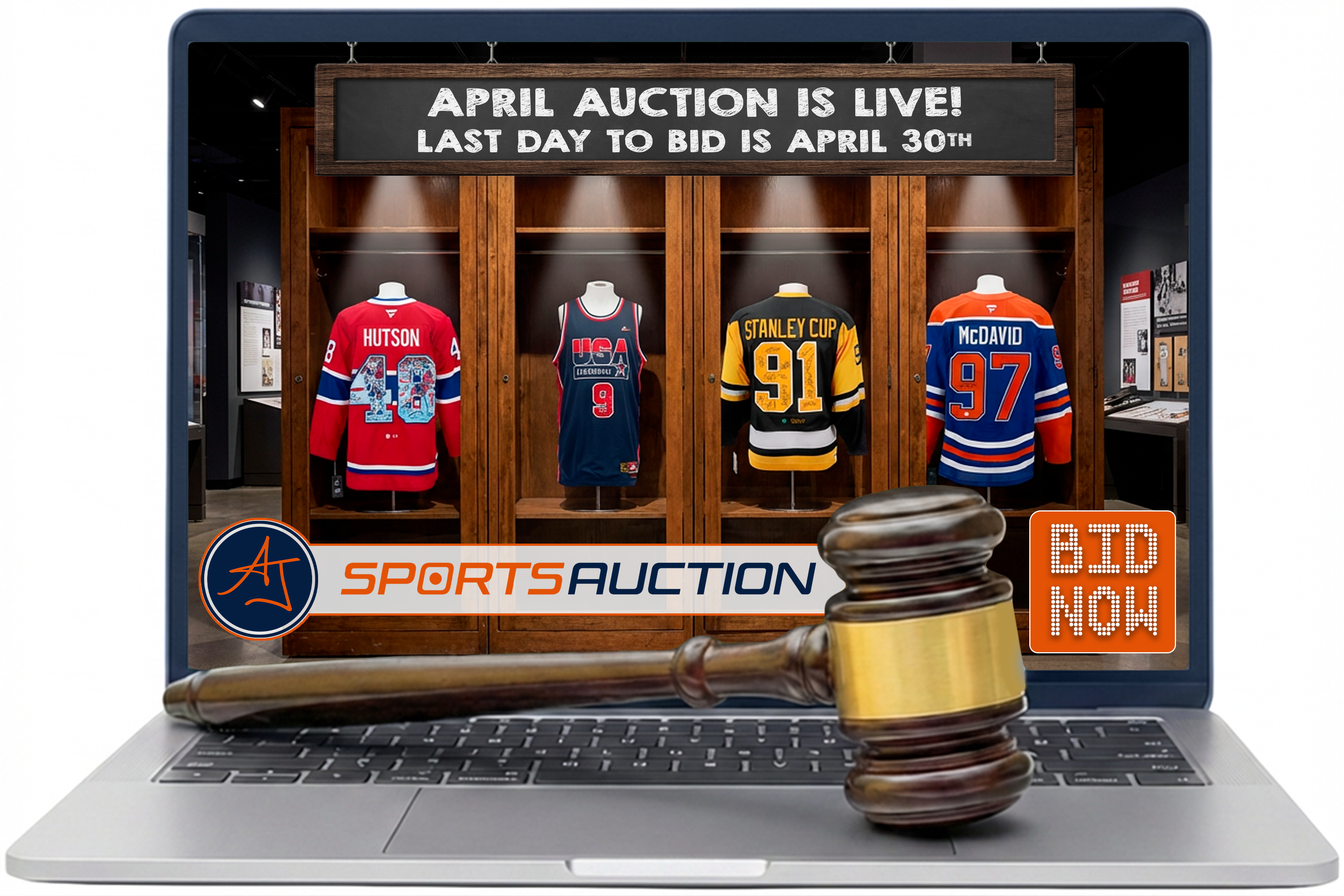A new auction every month. Bid on hundreds of authentic sports collectibles. Don't miss the current auction which closes Thursday April 30th at 10:00 pm EST