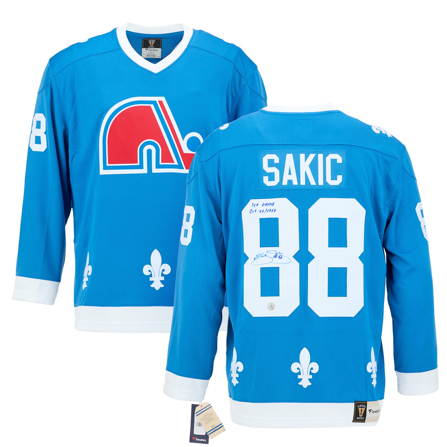 Joe Sakic Quebec Nordiques Signed & Dated 1st Game Fanatics Throwback Jersey