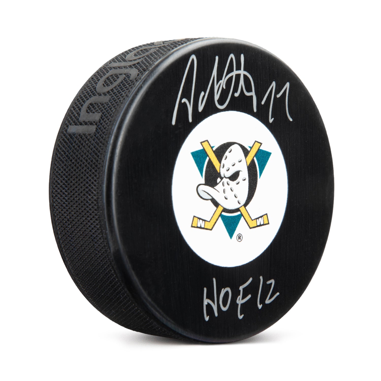 Adam Oates Signed Anaheim Mighty Ducks Hockey Puck with HOF Note