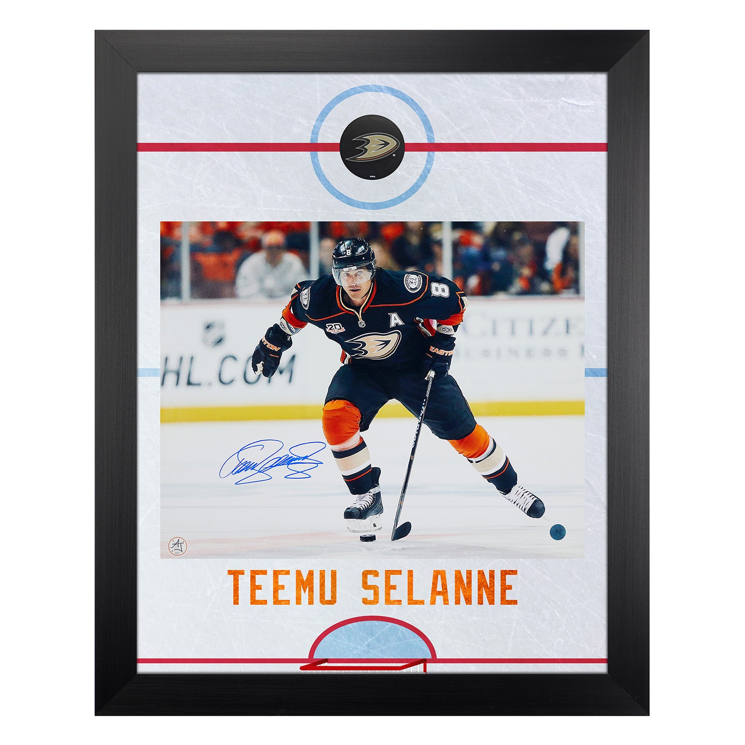 Teemu Selanne Autographed Anaheim Ducks Graphic Rink 26x32 Frame. From the AJ Sports autographed memorabilia collection - Product Code SELTADU21P6BF1.