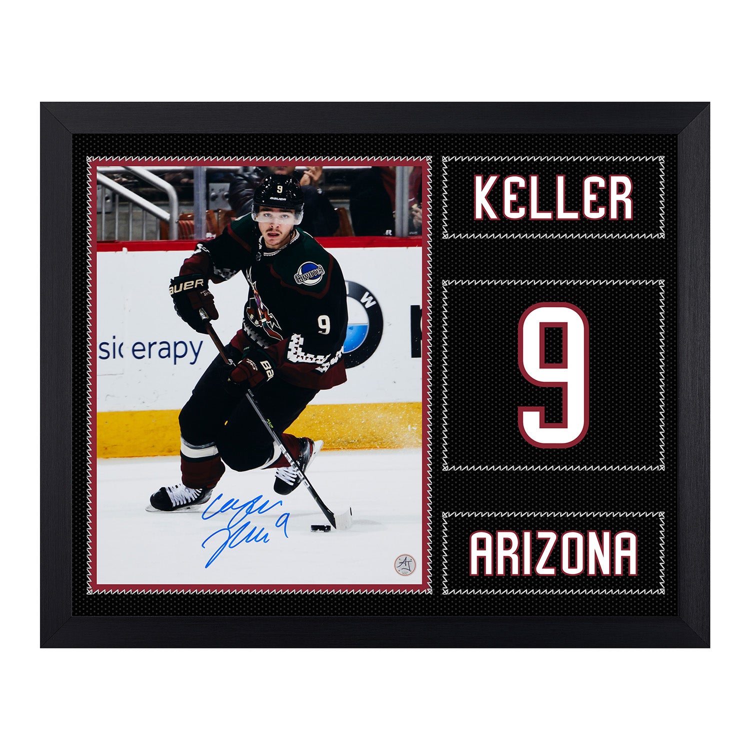 Clayton Keller Autographed Arizona Coyotes Uniform Graphic 19x23 Frame. Product Code KELCACO22P4AF1.