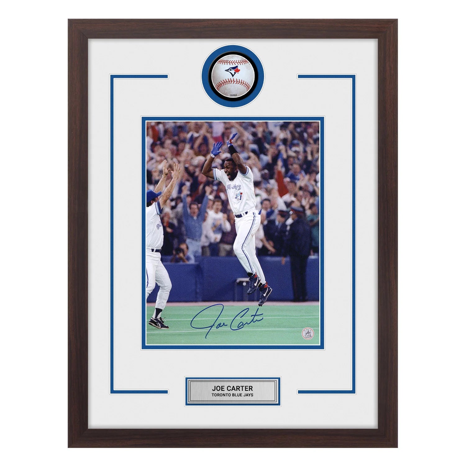 Joe Carter Autographed Toronto Blue Jays Baseball Logo 20x26 Frame