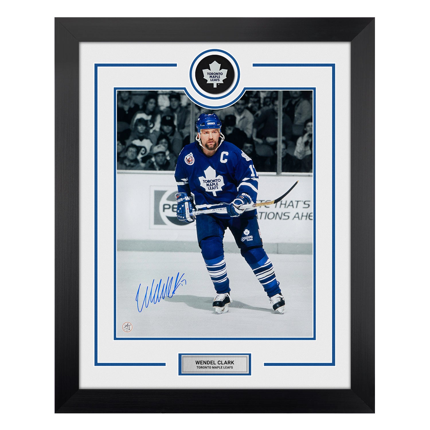 Wendel Clark Signed Toronto Maple Leafs Puck Logo 26x32 Frame