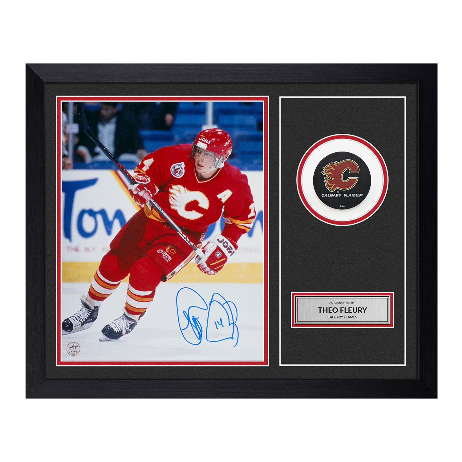 Theo Fleury Signed Calgary Flames Puck Display 19x23 Frame