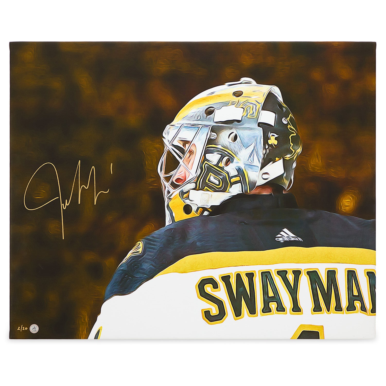 Jeremy Swayman Signed Boston Hockey Goalie Mask Profile 26x32 Art Canvas #/20