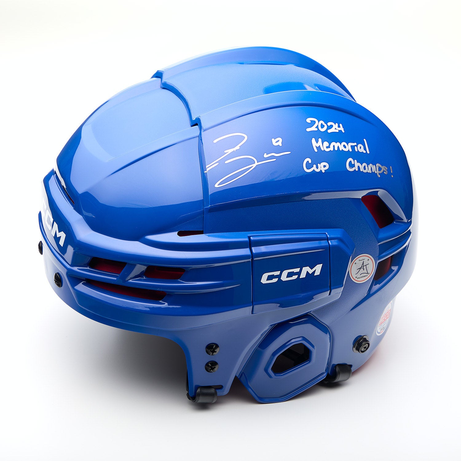 Zayne Parekh Signed Blue CCM Hockey Helmet with Memorial Cup Inscription
