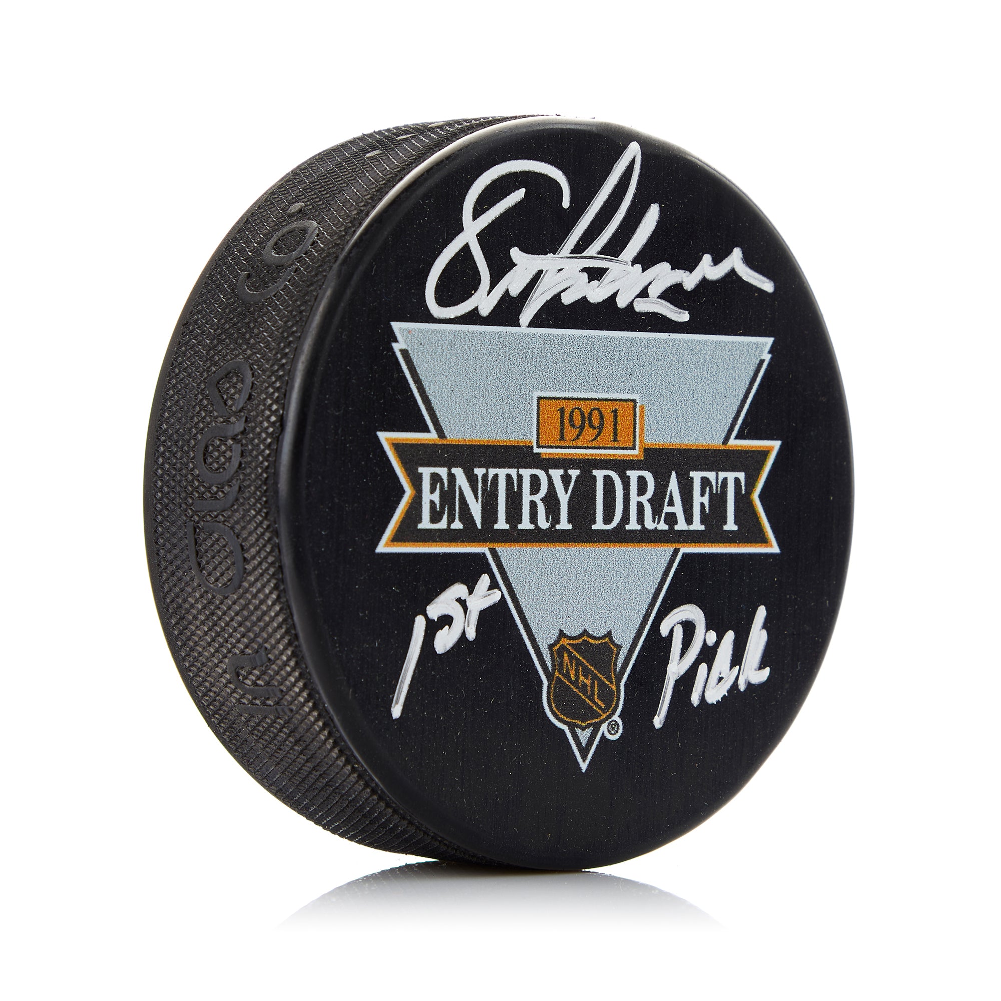 Eric Lindros Signed 1991 NHL Entry Draft Puck with 1st Pick Note