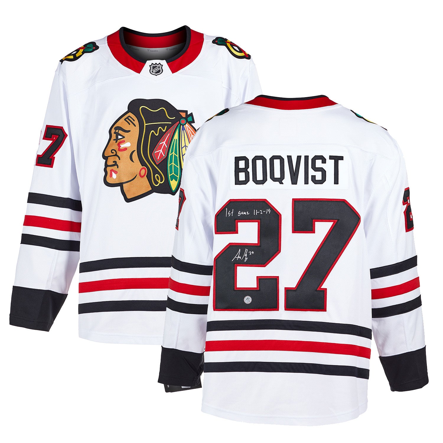 Adam Boqvist Chicago Blackhawks Signed & Dated 1st Game Fanatics Jersey