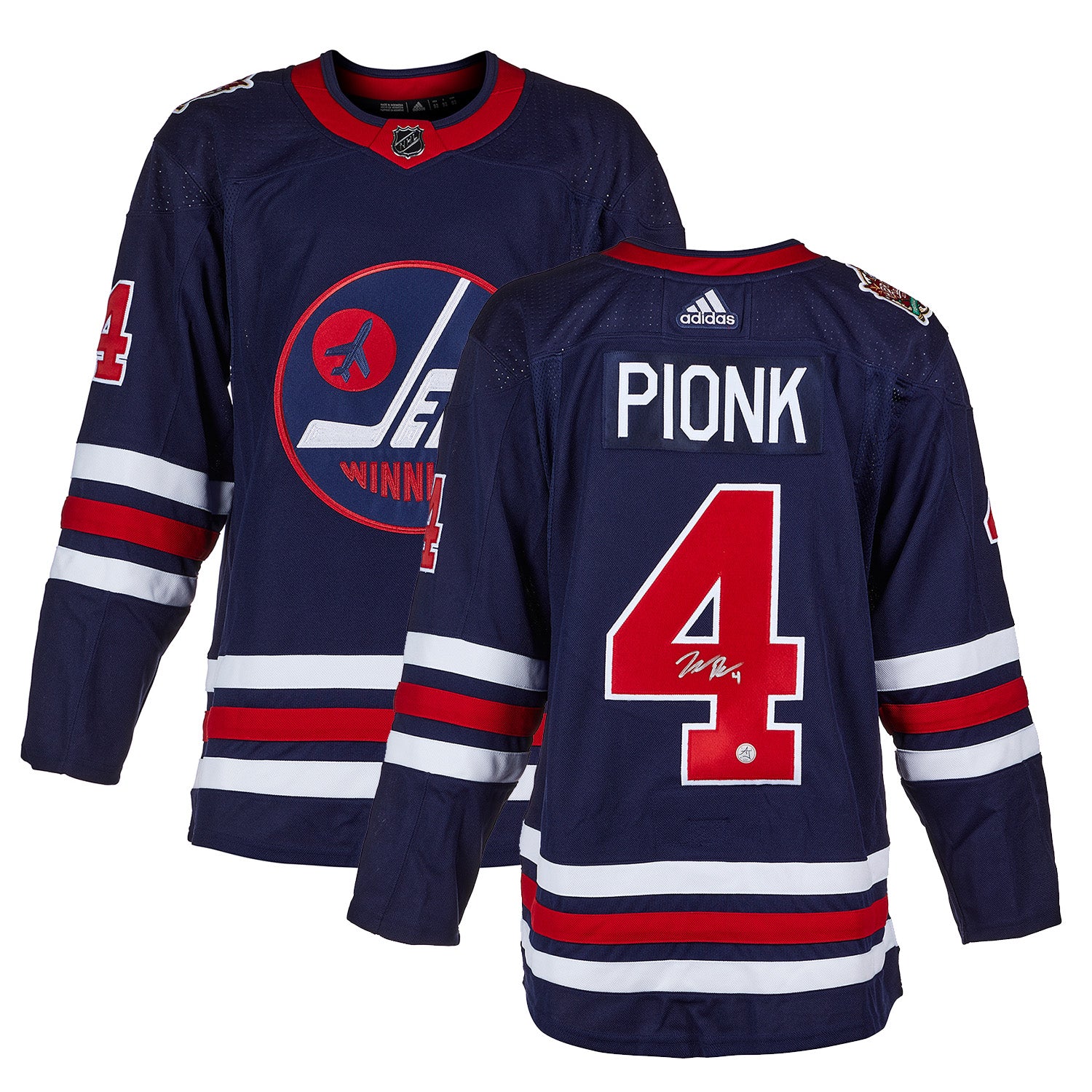 Neal Pionk Winnipeg Jets Autographed 2019 Heritage Classic Adidas Adizero Authentic Hockey Jersey. From the AJ Sports autographed memorabilia collection - Product Code PIONWJE19JAHA.