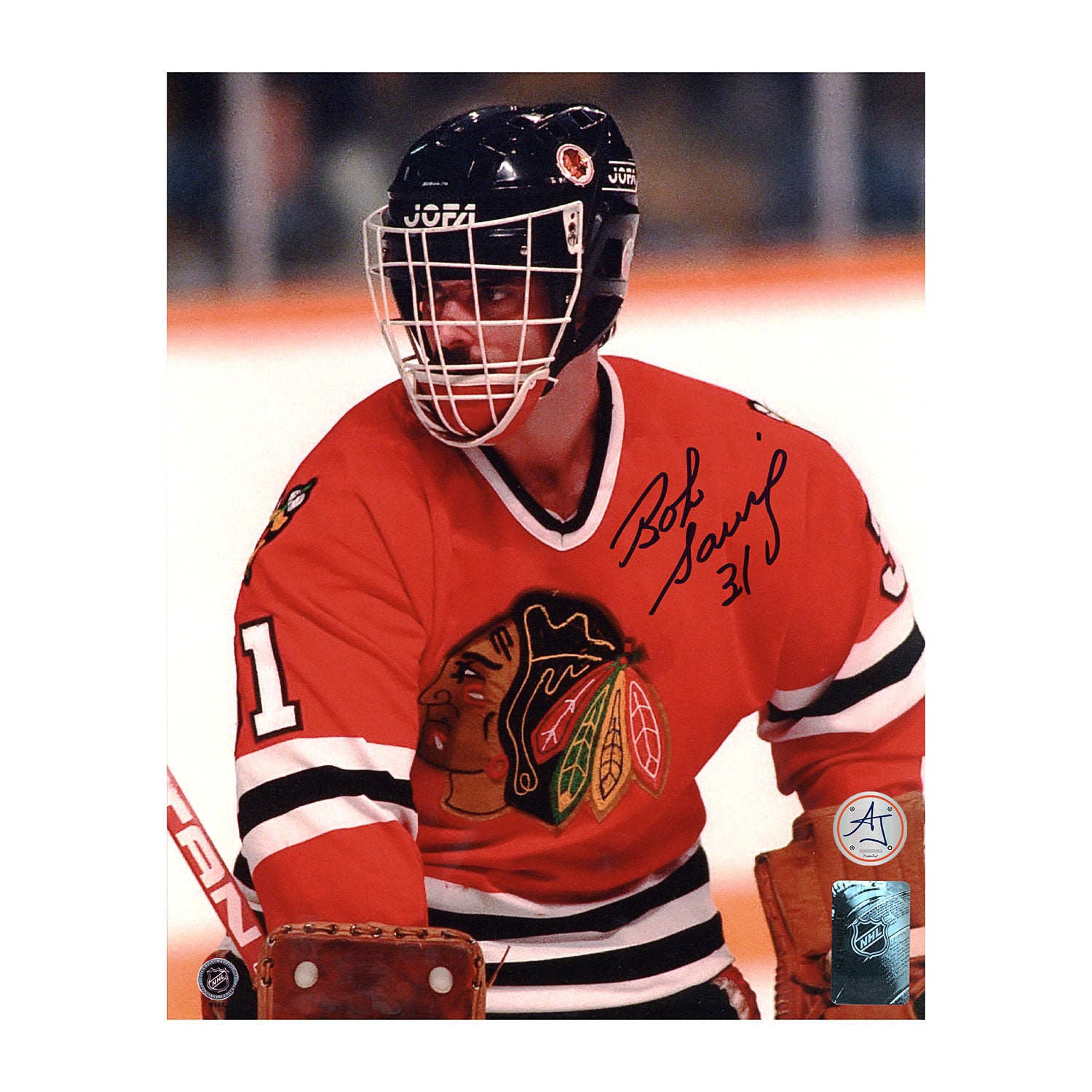 Bob Sauve Signed Chicago Blackhawks Goalie Mask Profile 8x10 Photo