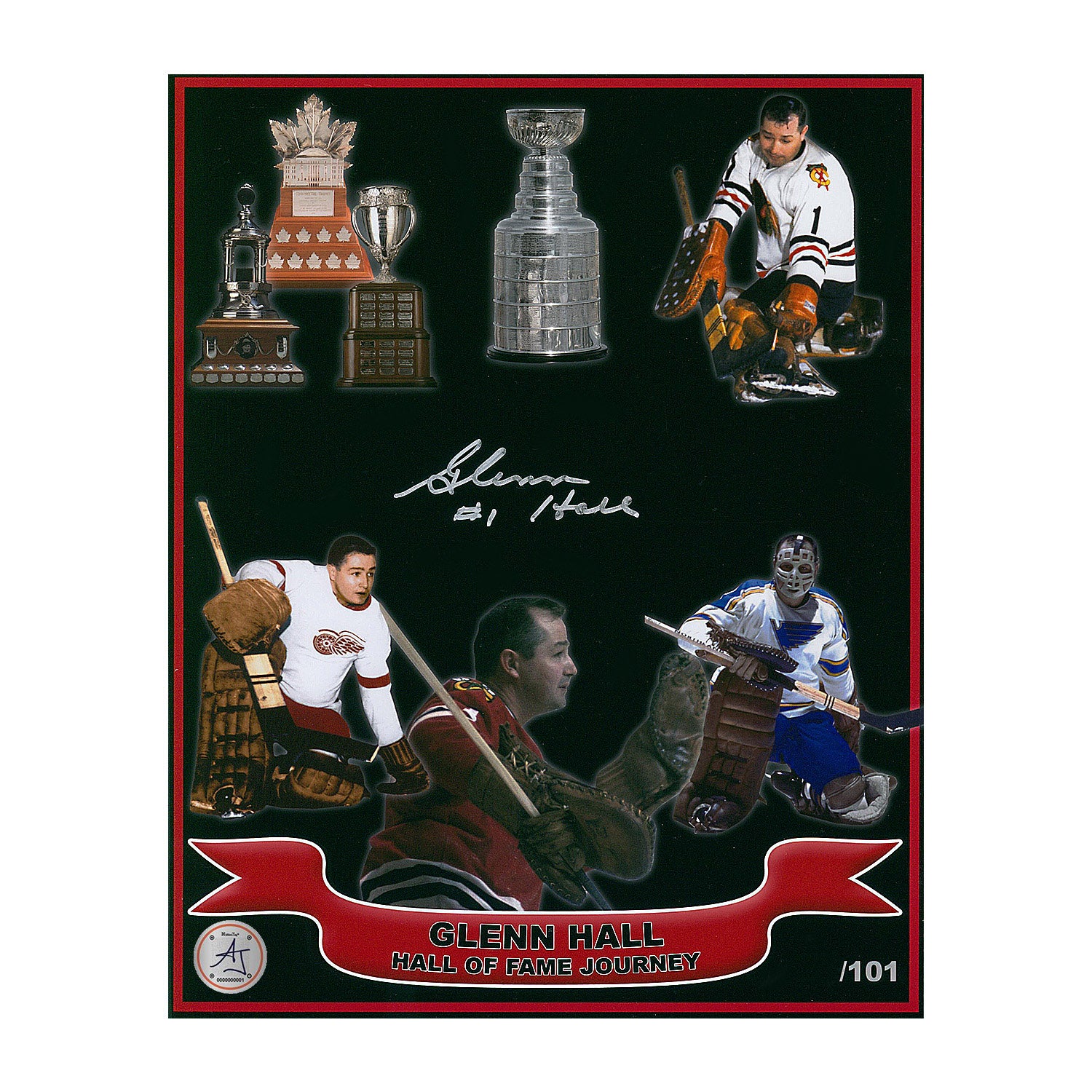 Glenn Hall Autographed Hockey Hall Of Fame Journey 8x10 Photo