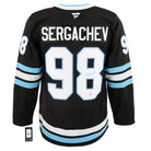 • This hockey jersey is hand-signed by Mikhail Sergachev.