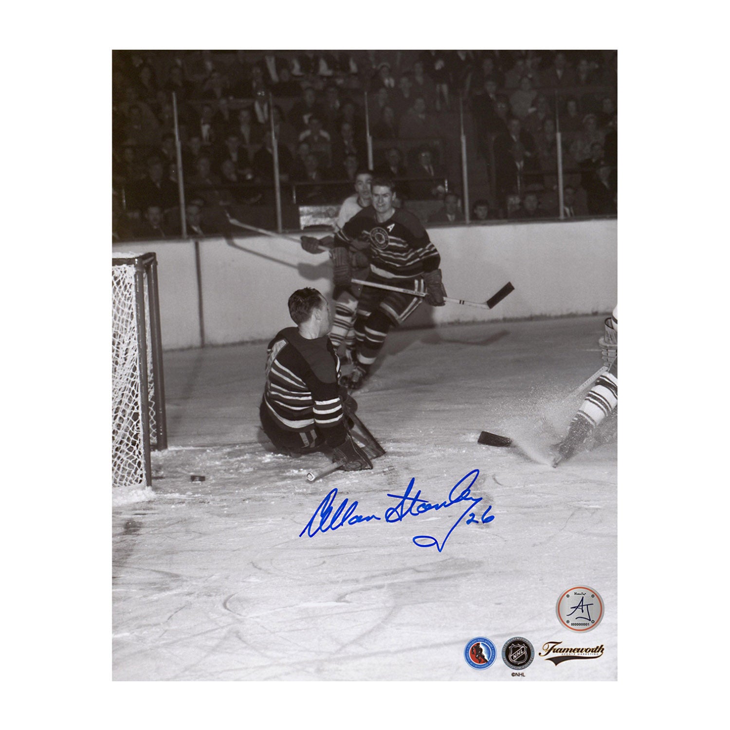 Allan Stanley Autographed Chicago Blackhawks Black & White Action 8x10 Photo