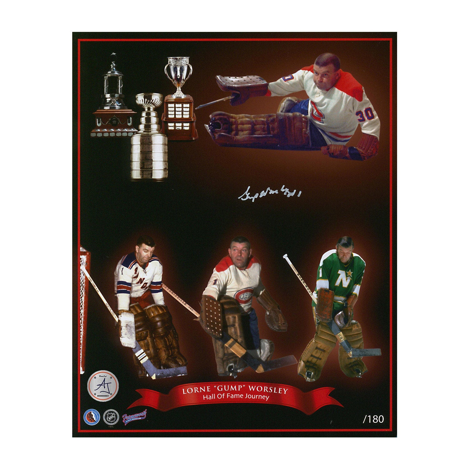 • This 8x10 photo is hand-signed by Gump Worsley.