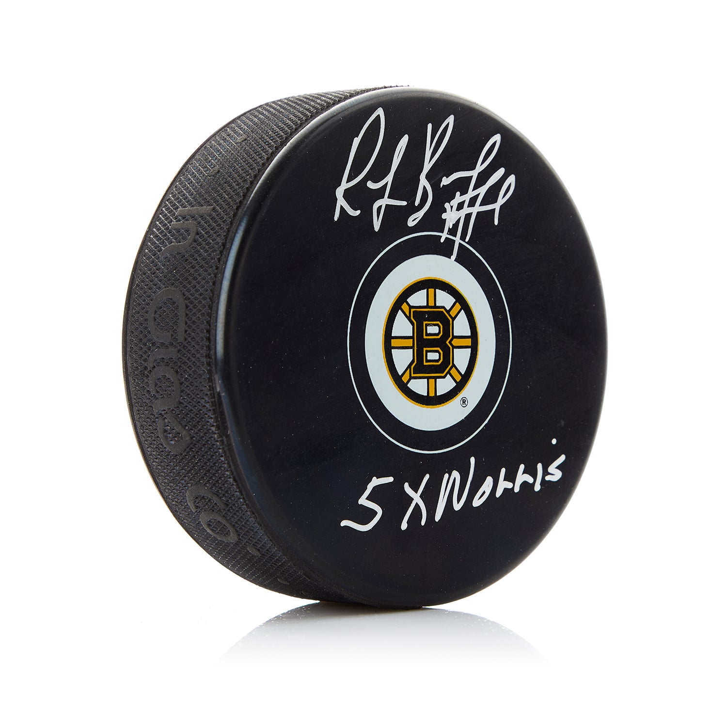 Ray Bourque Autographed Boston Bruins Hockey Puck with 5 x Norris Note