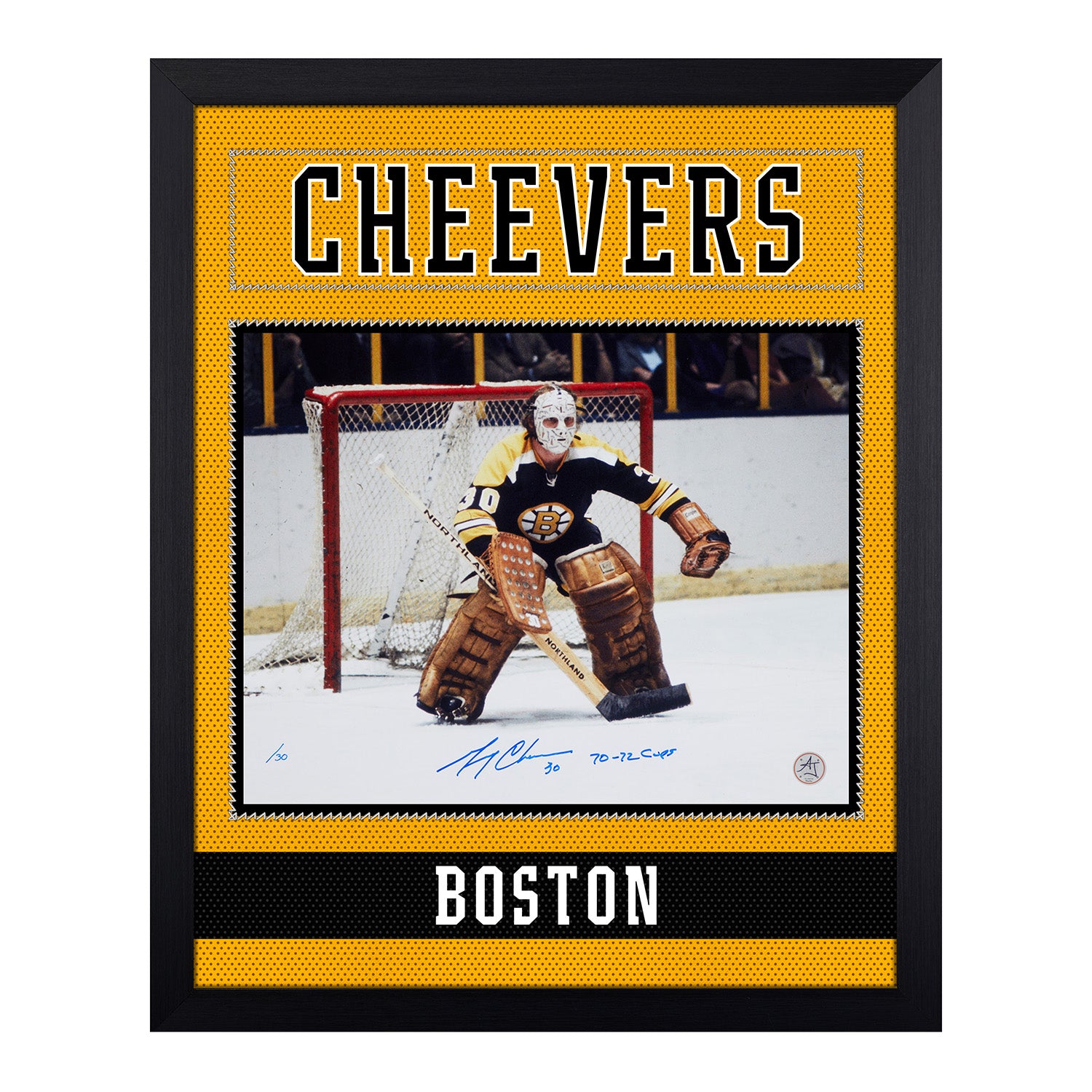 Gerry Cheevers Signed Boston Bruins Uniform Graphic 19x23 Frame