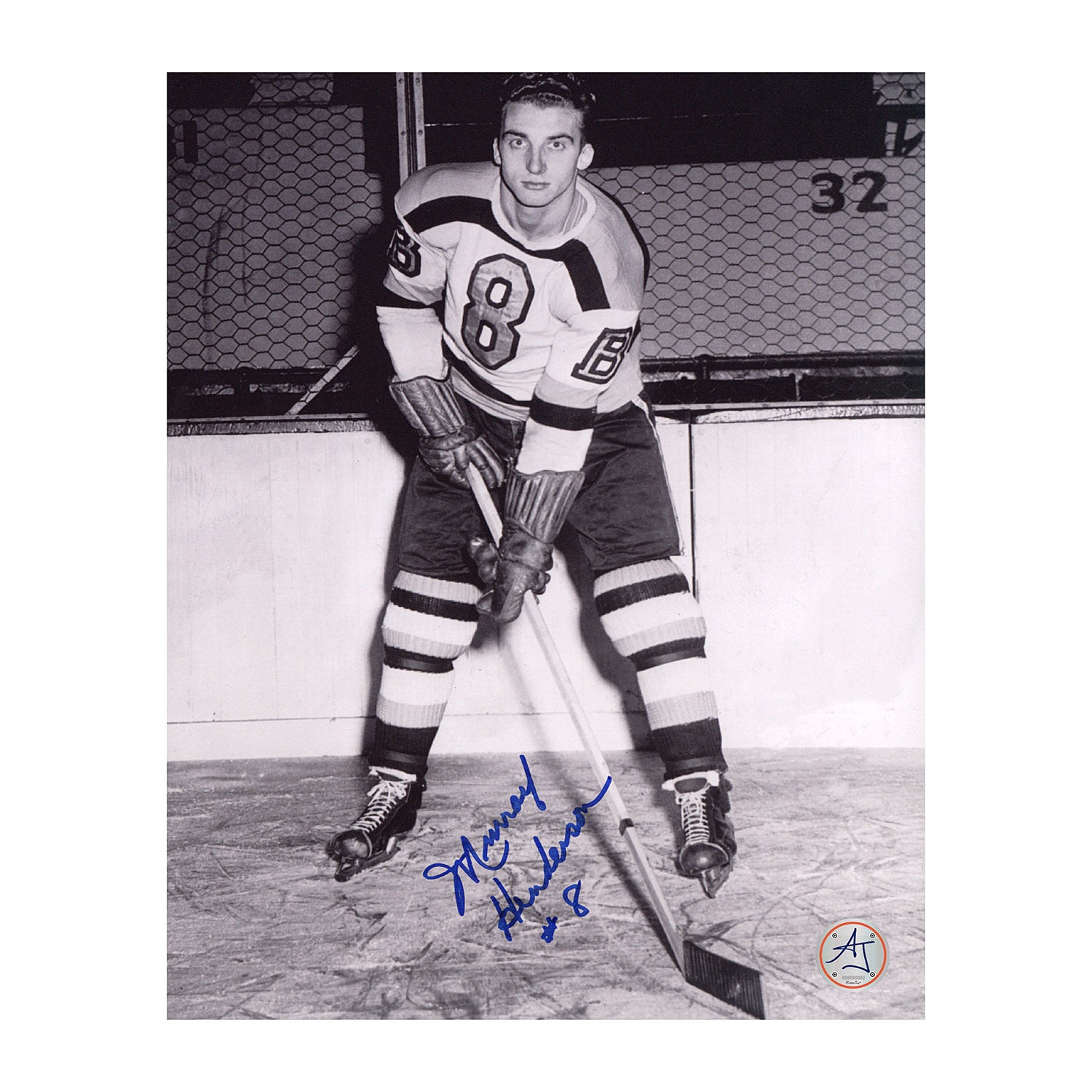 Murray Henderson Autographed Boston Bruins Black and White 8x10 Photo
