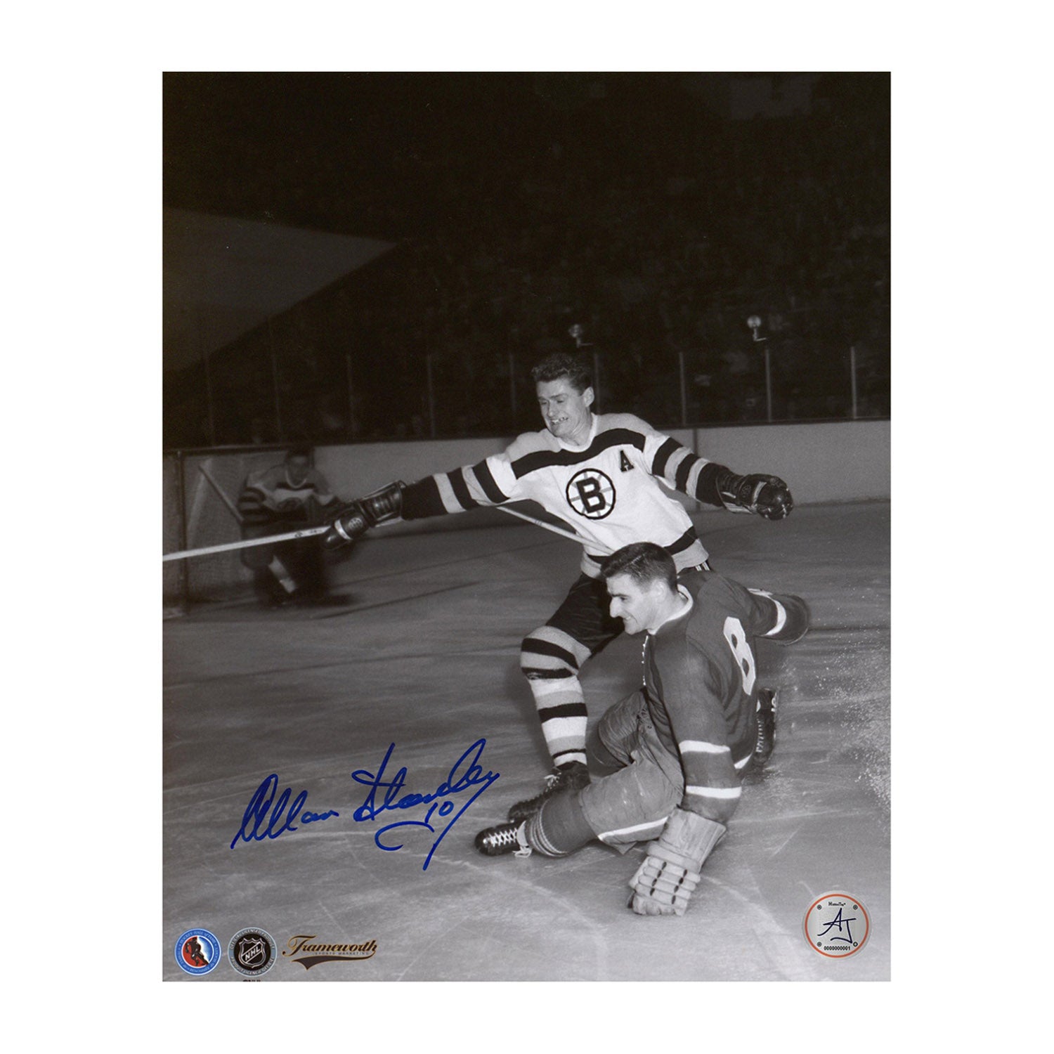 Allan Stanley Autographed Boston Bruins Black & White Action 8x10 Photo