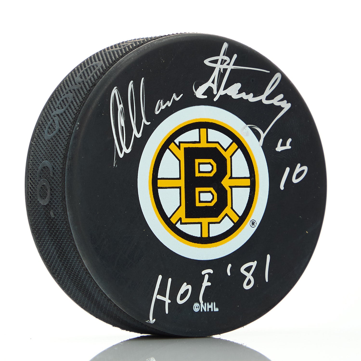 Allan Stanley Signed Boston Bruins Hockey Puck with HOF Note