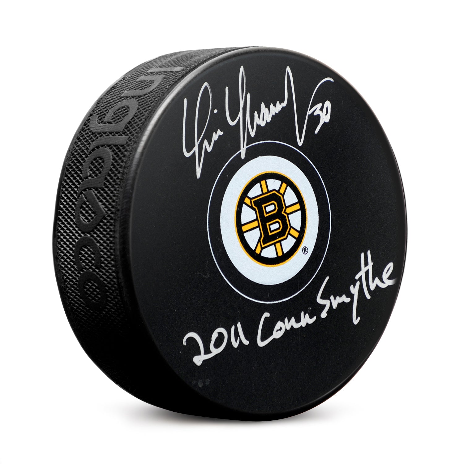 Tim Thomas Signed Boston Bruins Hockey Puck with 2011 Conn Smythe Note