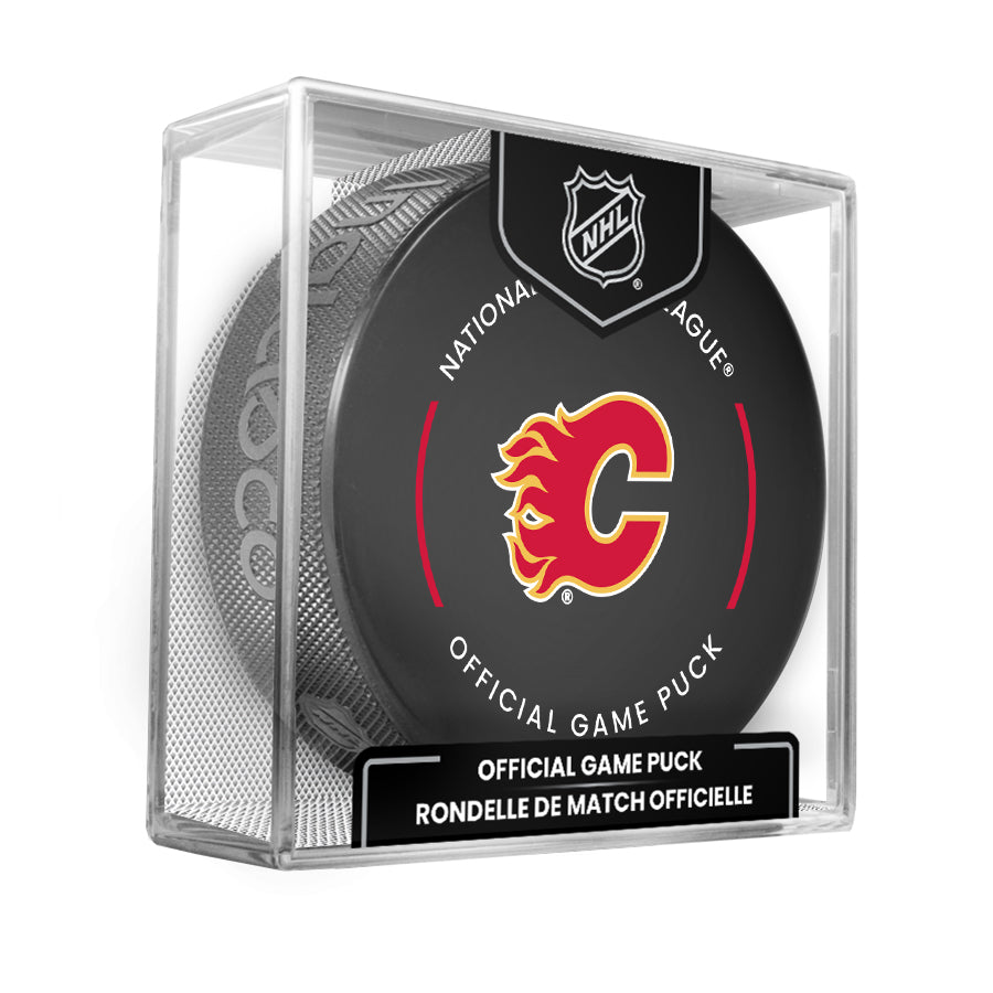 Calgary Flames 2023-24 NHL Official Game Puck with Display Case