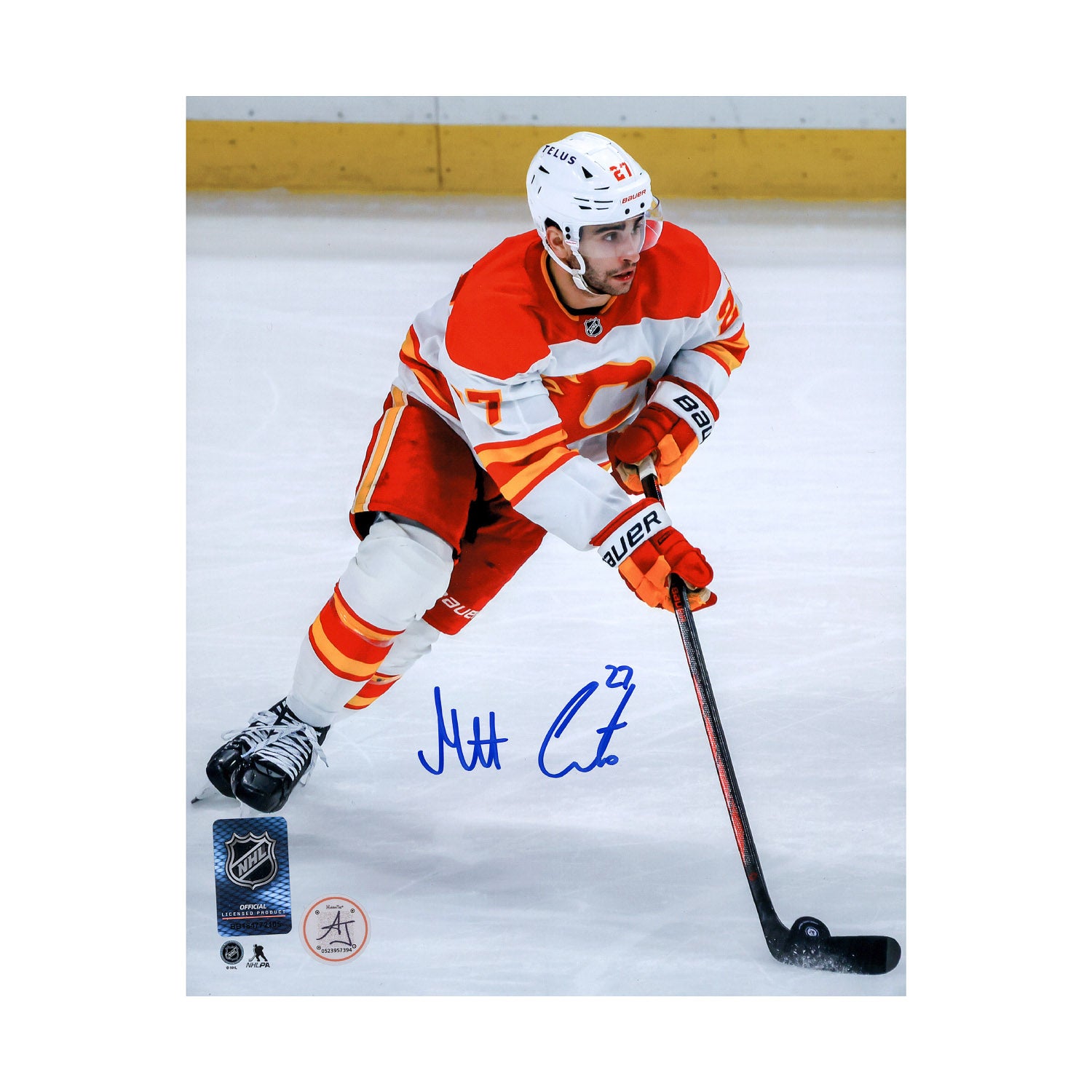 Matt Coronato Autographed Calgary Flames Puck Rush 8x10 Photo