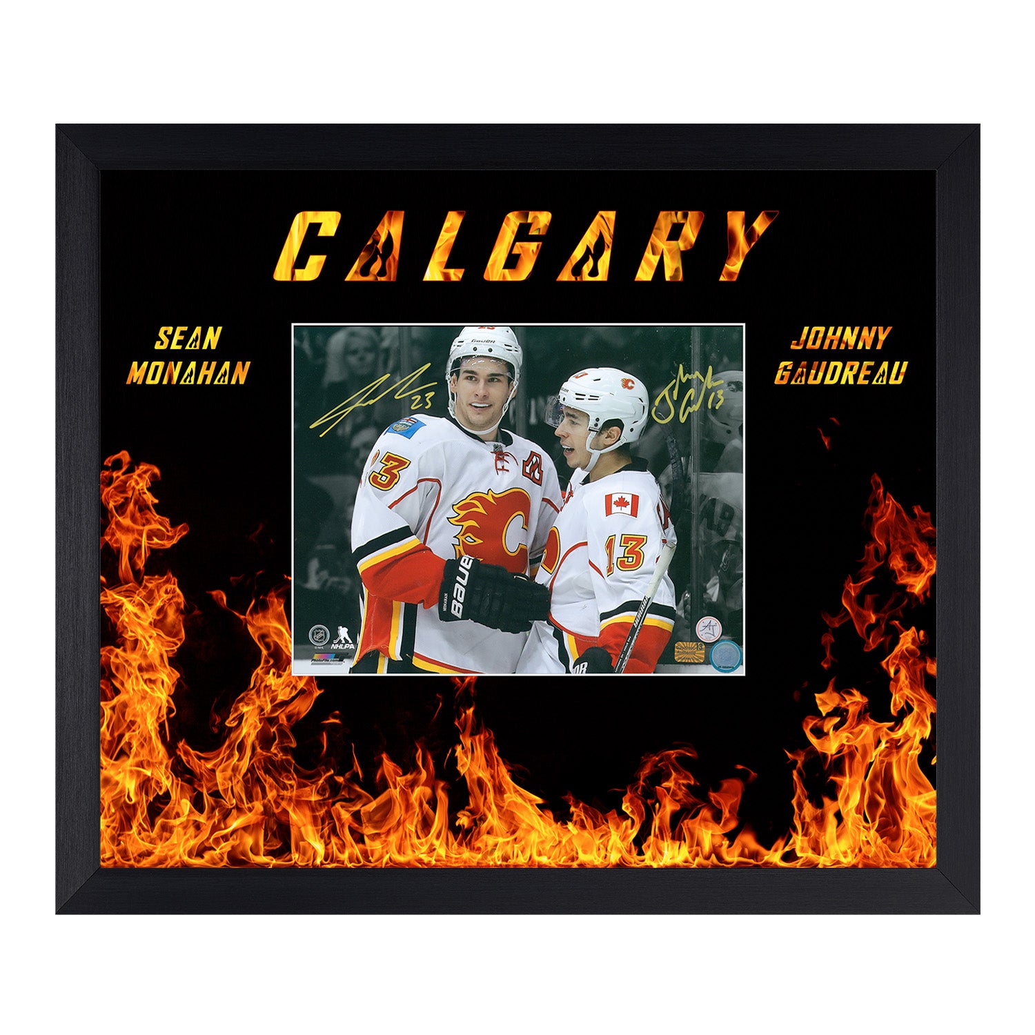 Johnny Gaudreau & Sean Monahan Dual Signed Calgary Flames Fire Graphic 23x27 Frame