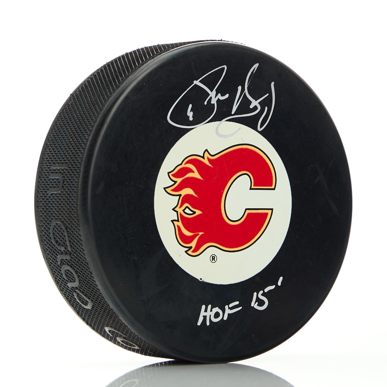 Phil Housley Autographed Calgary Flames Hockey Puck with HOF Note