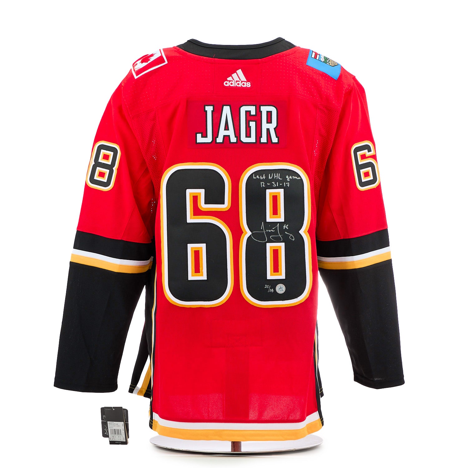 Jaromir Jagr Calgary Flames Signed & Dated Final NHL Game adidas Jersey #20/68