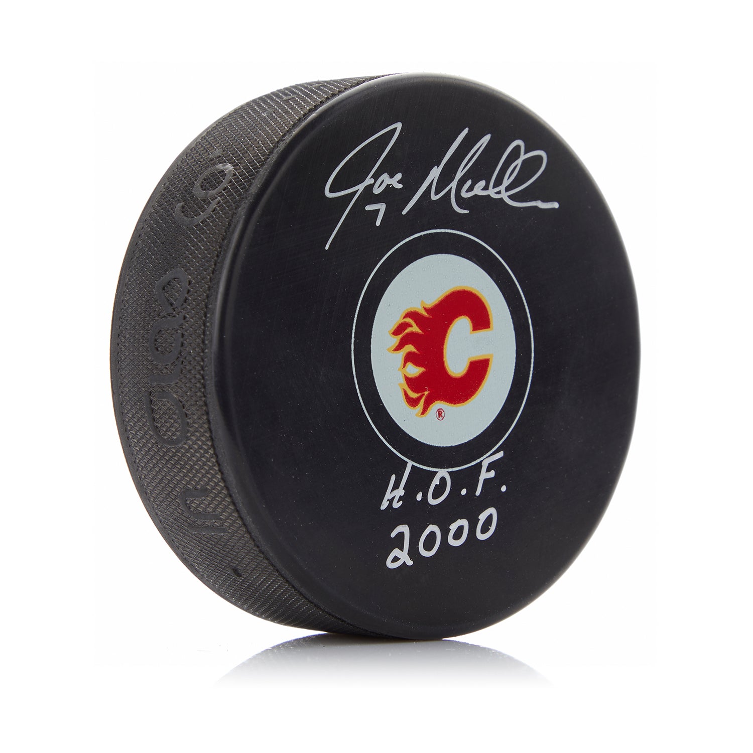 Joe Mullen Signed Calgary Flames Hockey Puck with HOF Note
