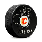 Joe Nieuwendyk Signed Calgary Flames Hockey Puck with 1988 ROY Note