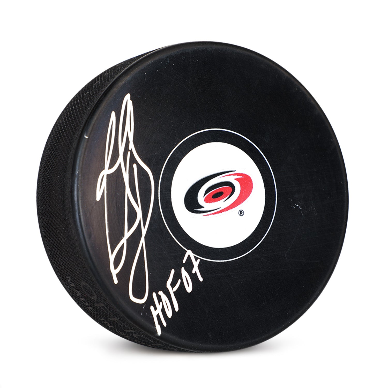 Ron Francis Autographed Carolina Hurricanes Hockey Puck with HOF Note