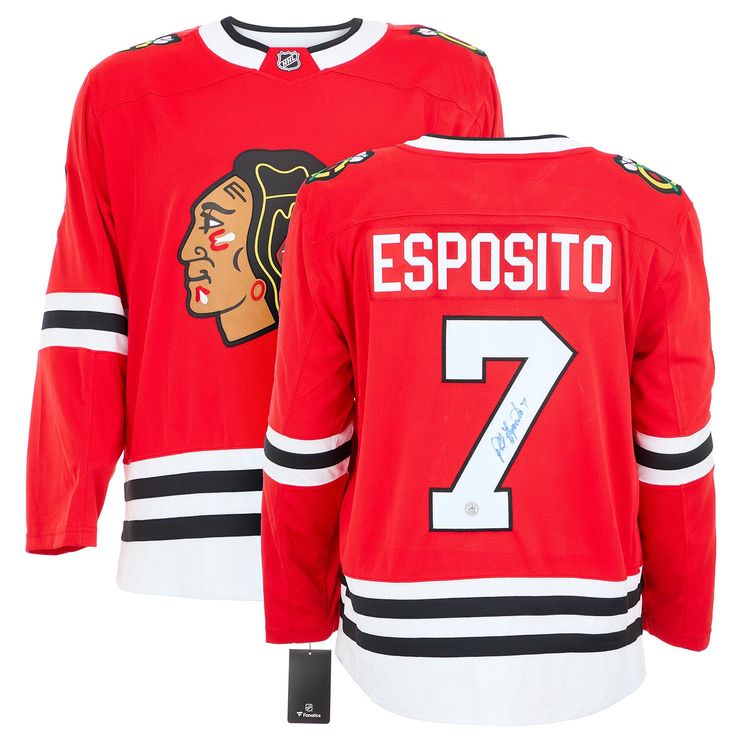 • This hockey jersey is hand-signed by Phil Esposito.