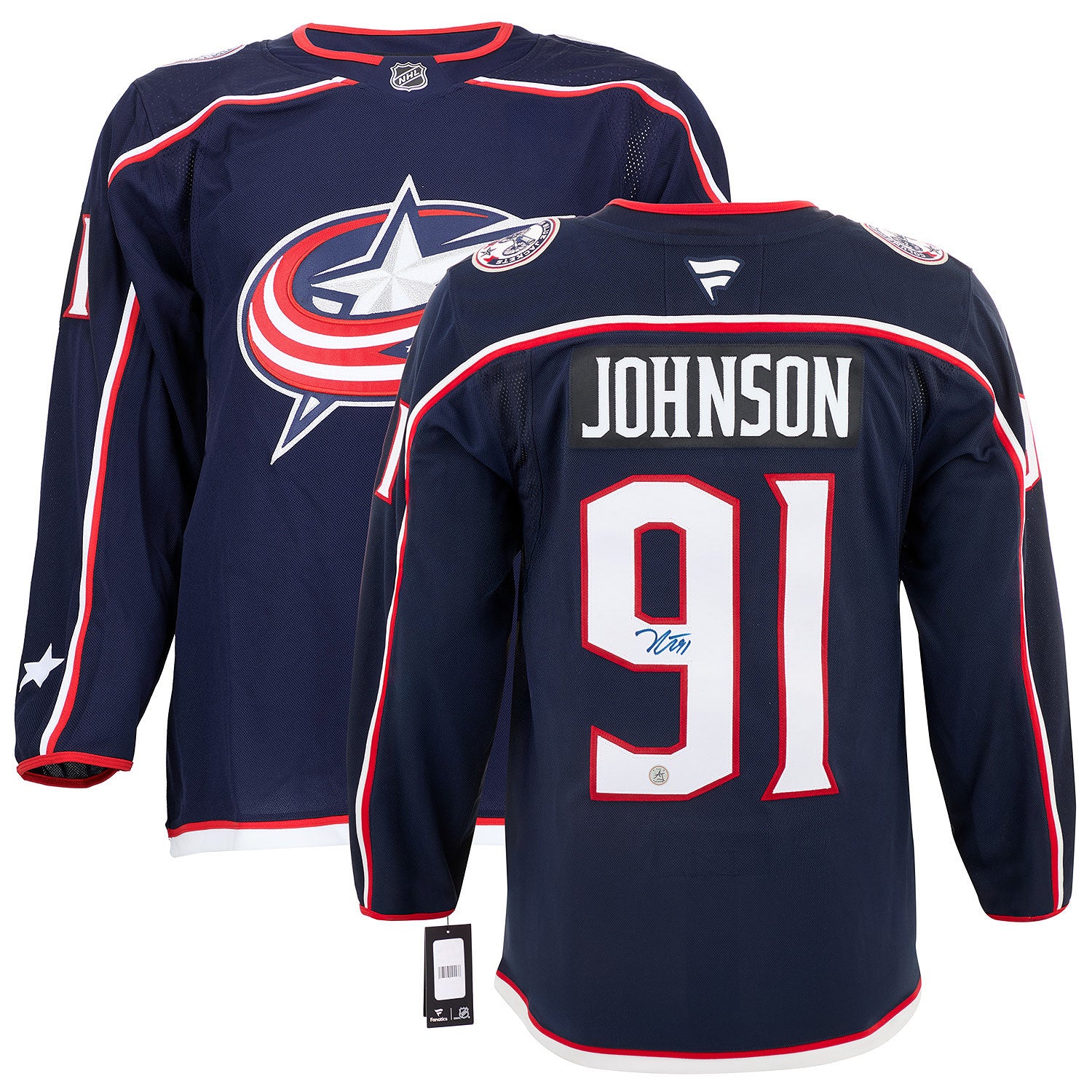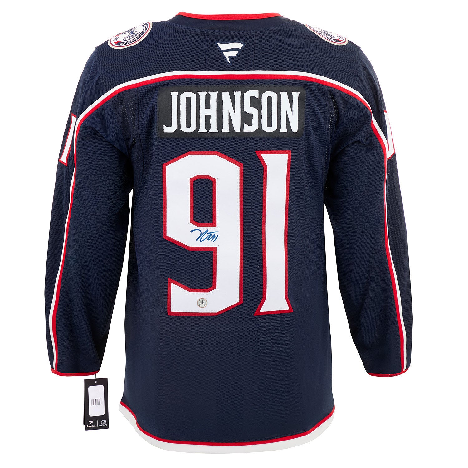 Kent Johnson Autographed Columbus Blue Jackets Fanatics Premium Jersey