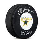 Ed Belfour Signed Dallas Stars Retro Logo Puck with HOF Note