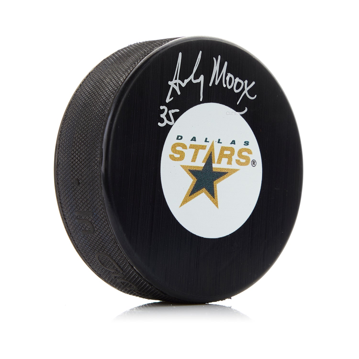 Andy Moog Autographed Dallas Stars Retro Logo Puck