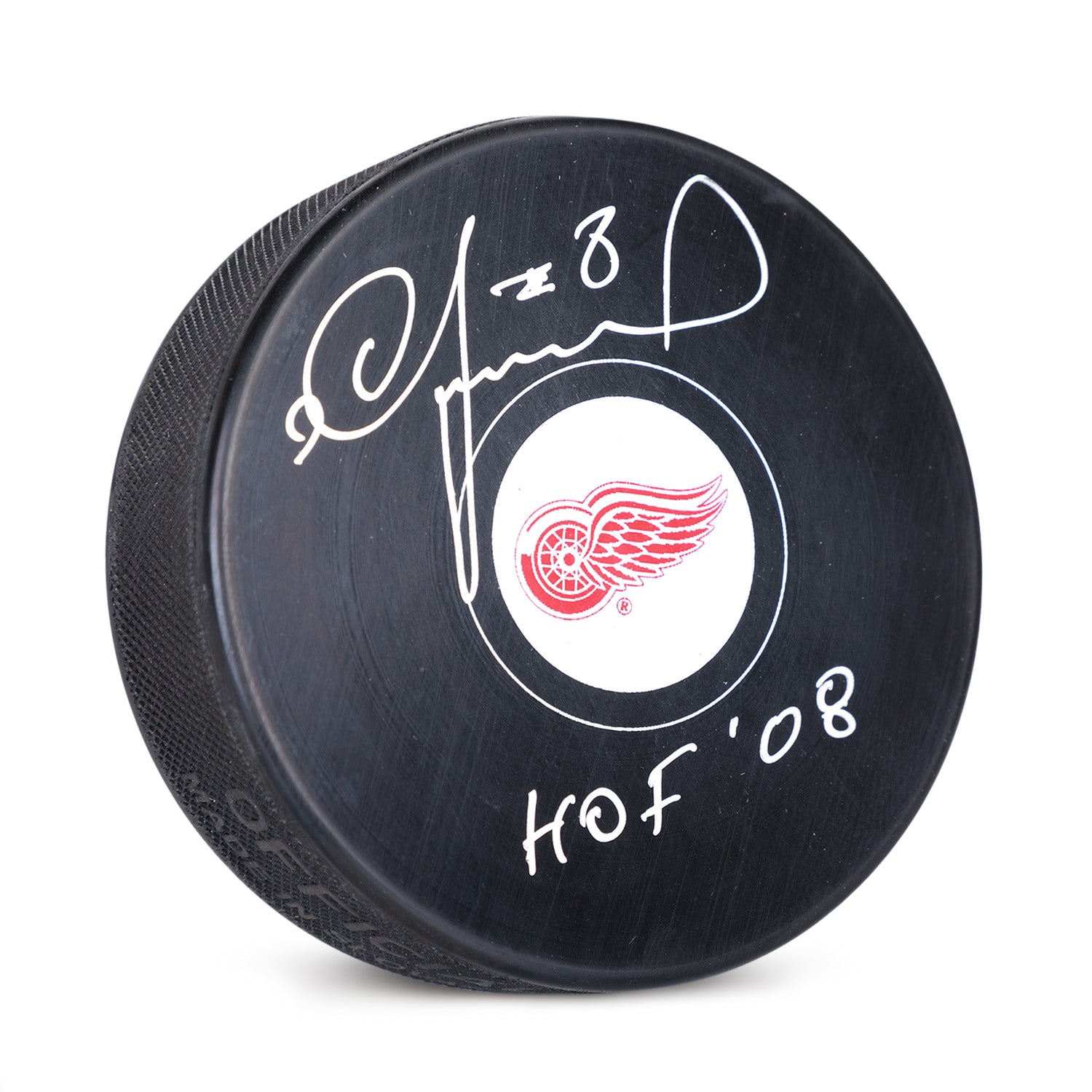 Igor Larionov Signed Detroit Red Wings Hockey Puck with HOF Note