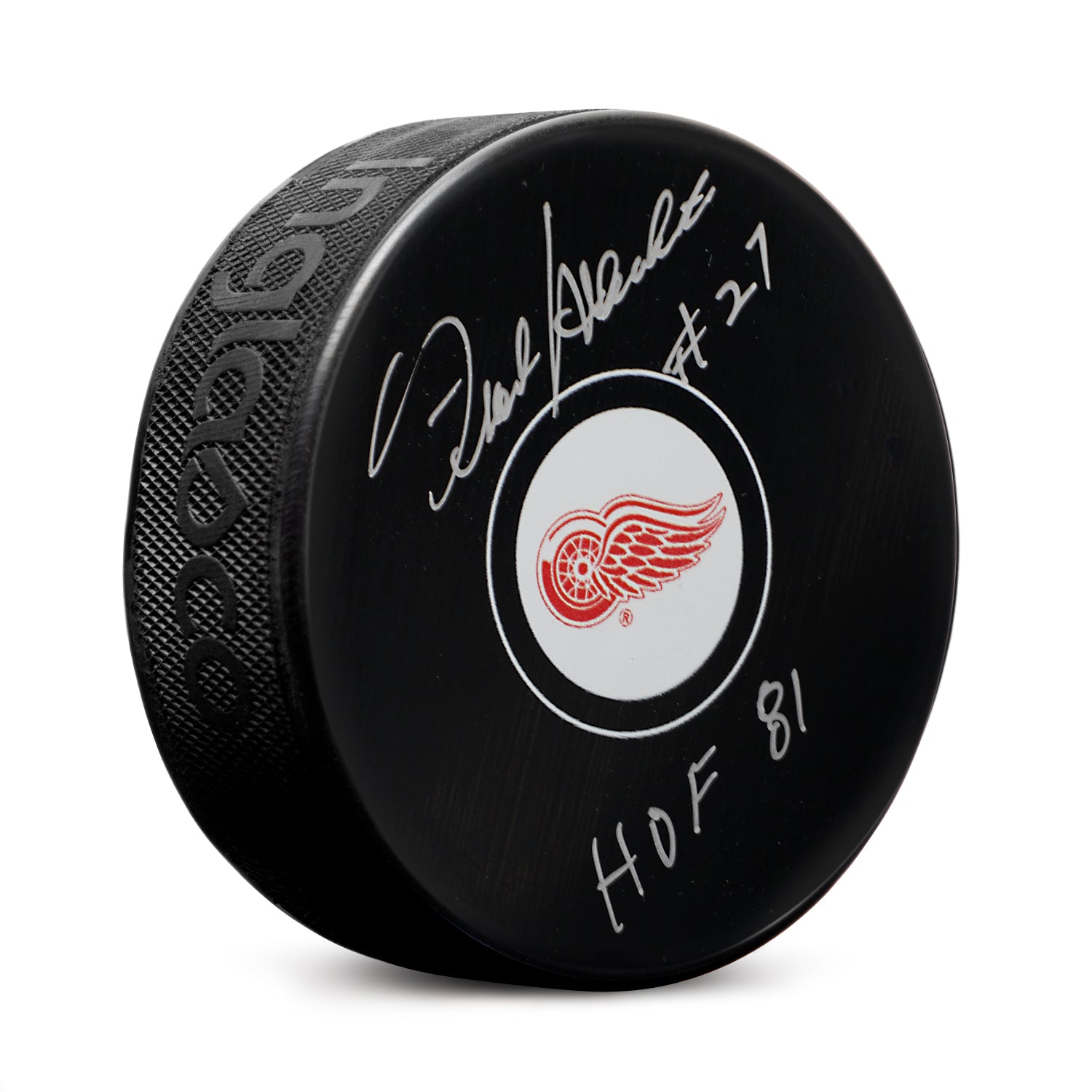 Frank Mahovlich Autographed Detroit Red Wings Hockey Puck with HOF Note