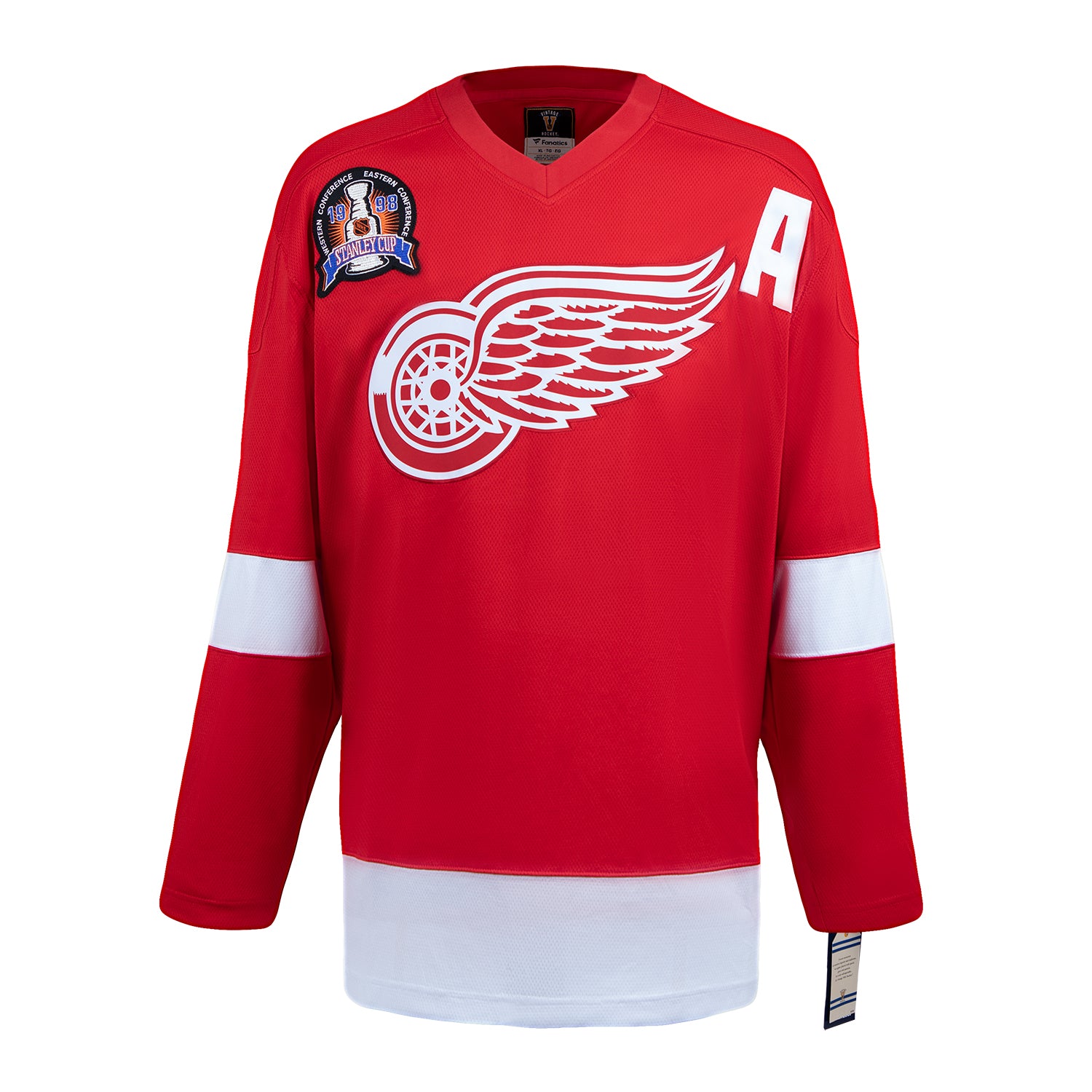 • Includes licensed 1998 Stanley Cup Finals Patch sewn on the jersey.