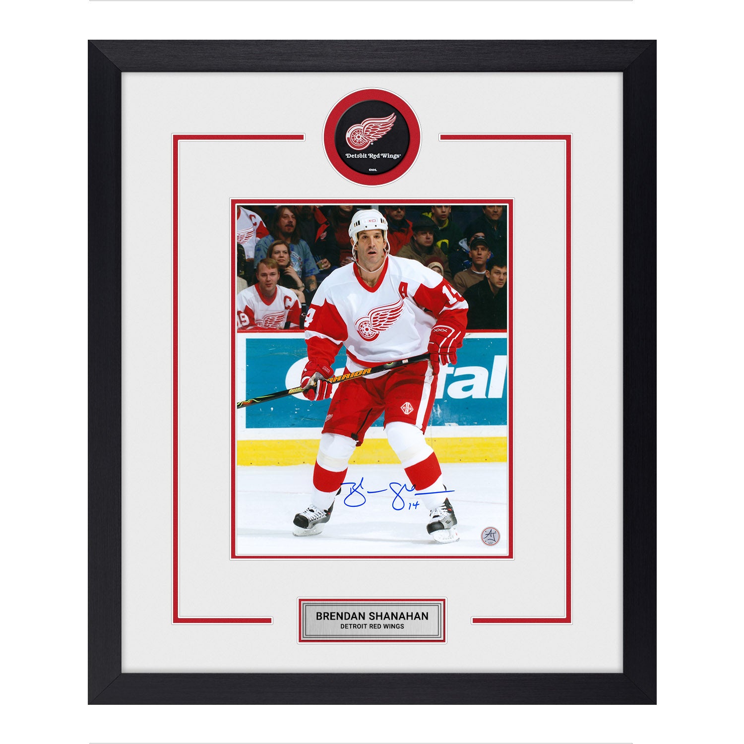 Brendan Shanahan Signed Detroit Red Wings Puck Logo 23x27 Frame