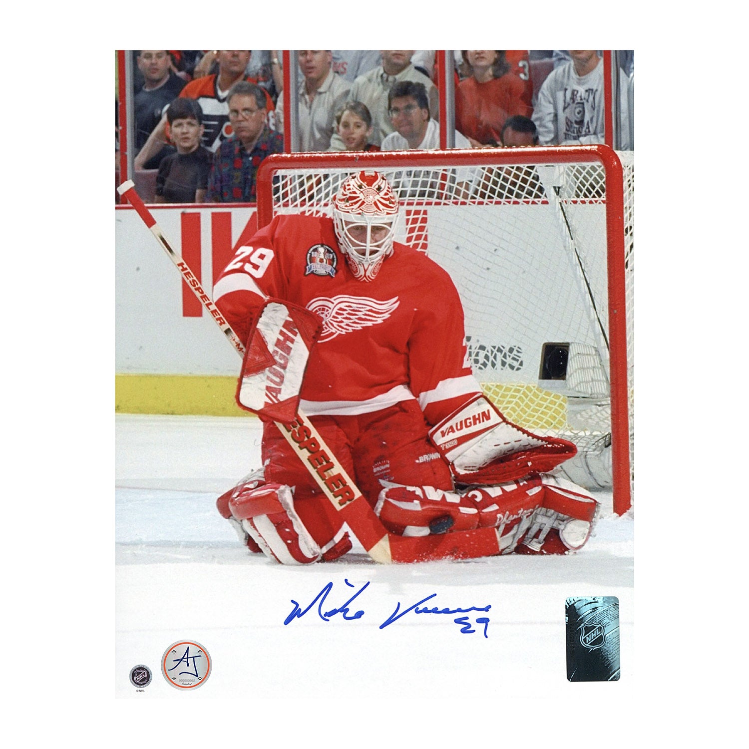 Mike Vernon Signed Detroit Red Wings Butterfly Save 8x10 Photo