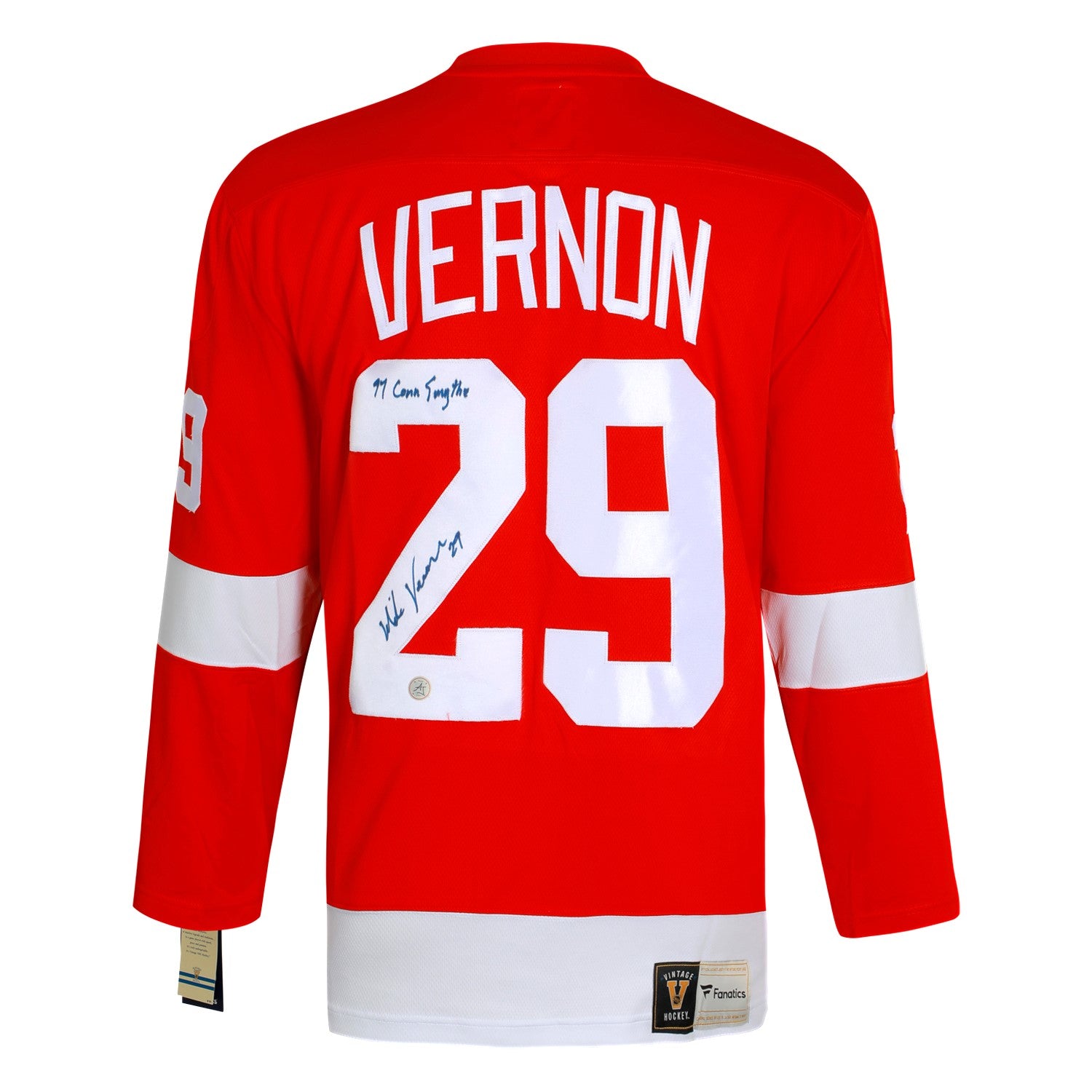 Mike Vernon Signed Detroit Red Wings Throwback Fanatics Jersey with 97 Note