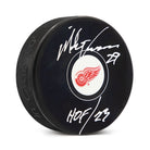 Mike Vernon Autographed Detroit Red Wings Hockey Puck with HOF Note