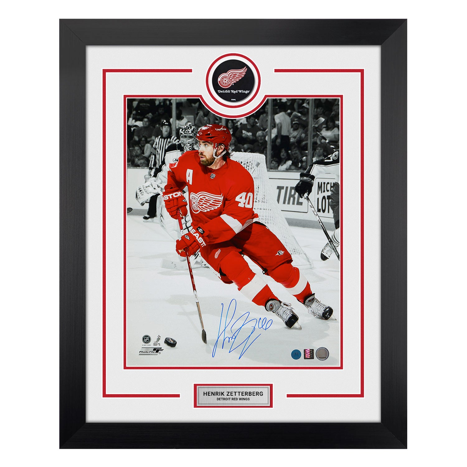 Henrik Zetterberg Signed Detroit Red Wings Puck Logo 26x32 Frame