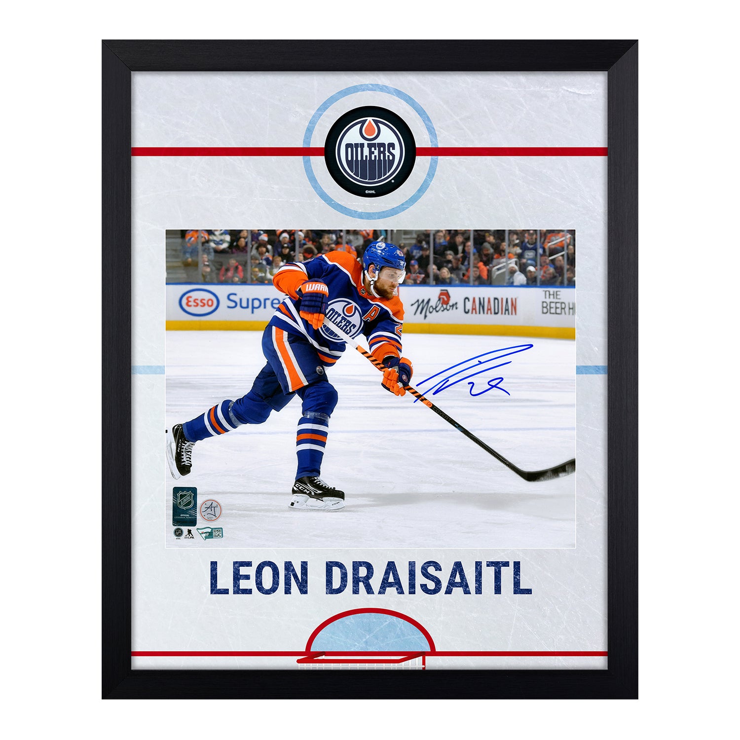 Leon Draisaitl Signed Edmonton Oilers Graphic Rink 19x23 Frame