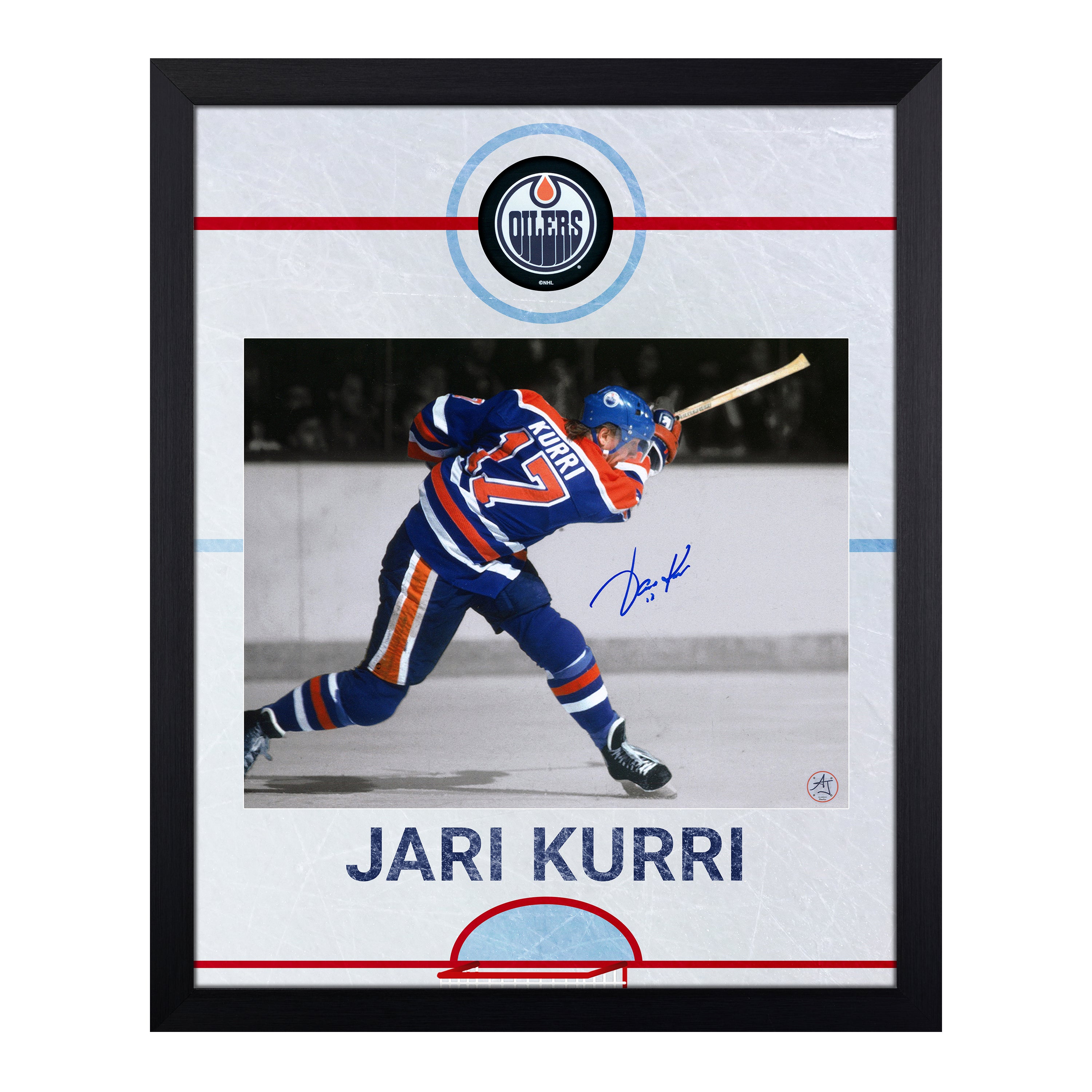 Jari Kurri Autographed Edmonton Oilers Color Isolation Graphic Rink 19x23 Frame