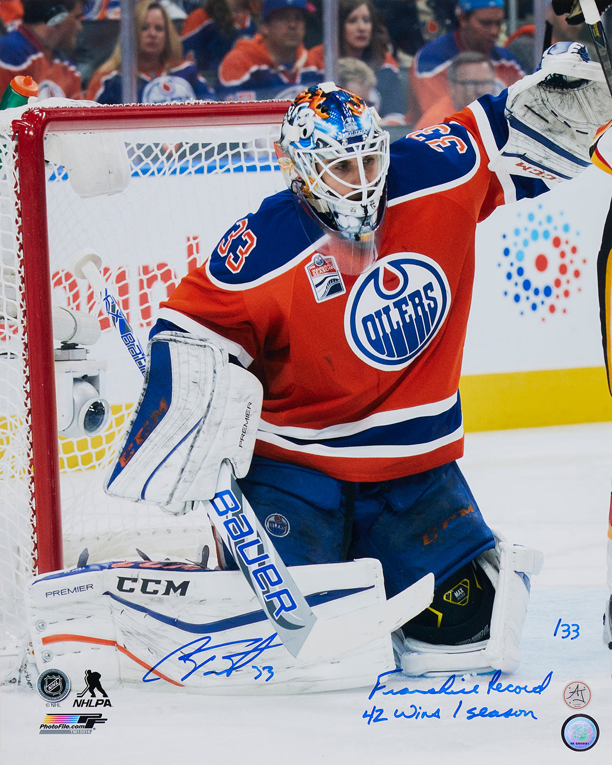Cam Talbot Signed & Inscribed Edmonton Oilers Wins Record 16x20 Photo