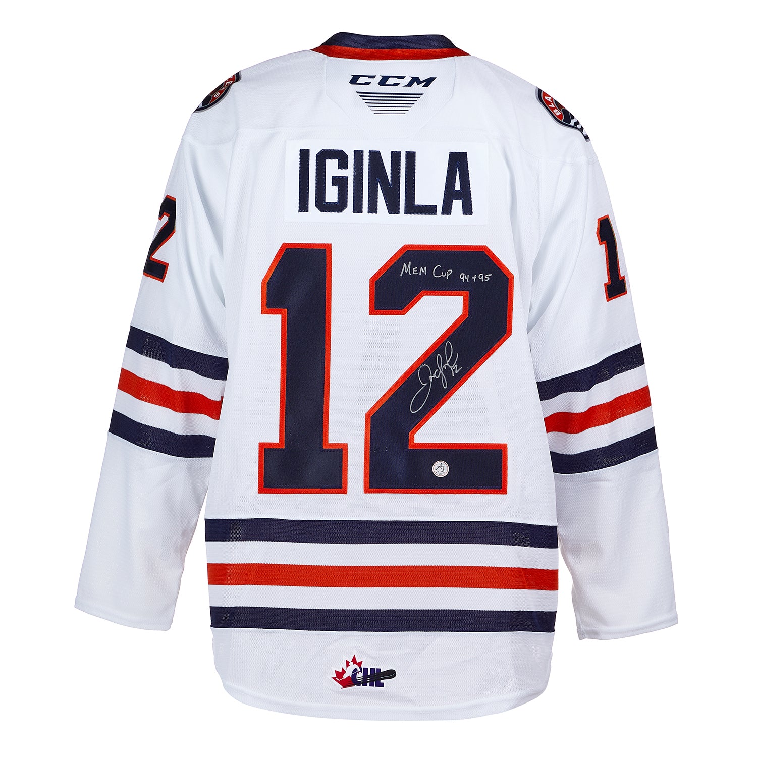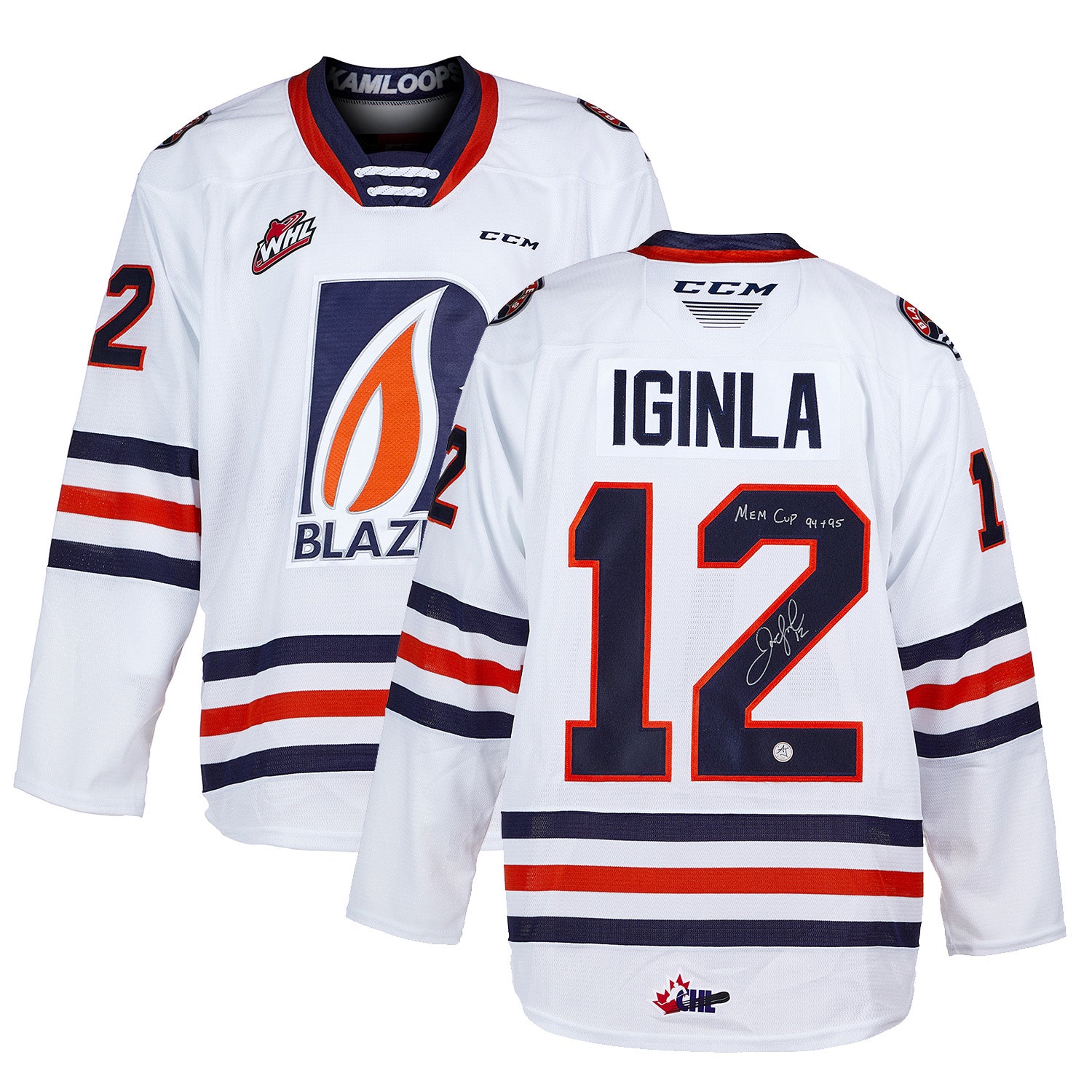 Jarome Iginla Signed Kamloops Blazers White CCM CHL Hockey Jersey with Mem Cup 94 +95 Note