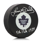Lanny McDonald Signed Toronto Maple Leafs Retro Logo Puck with 4th Pick 1973 Note
