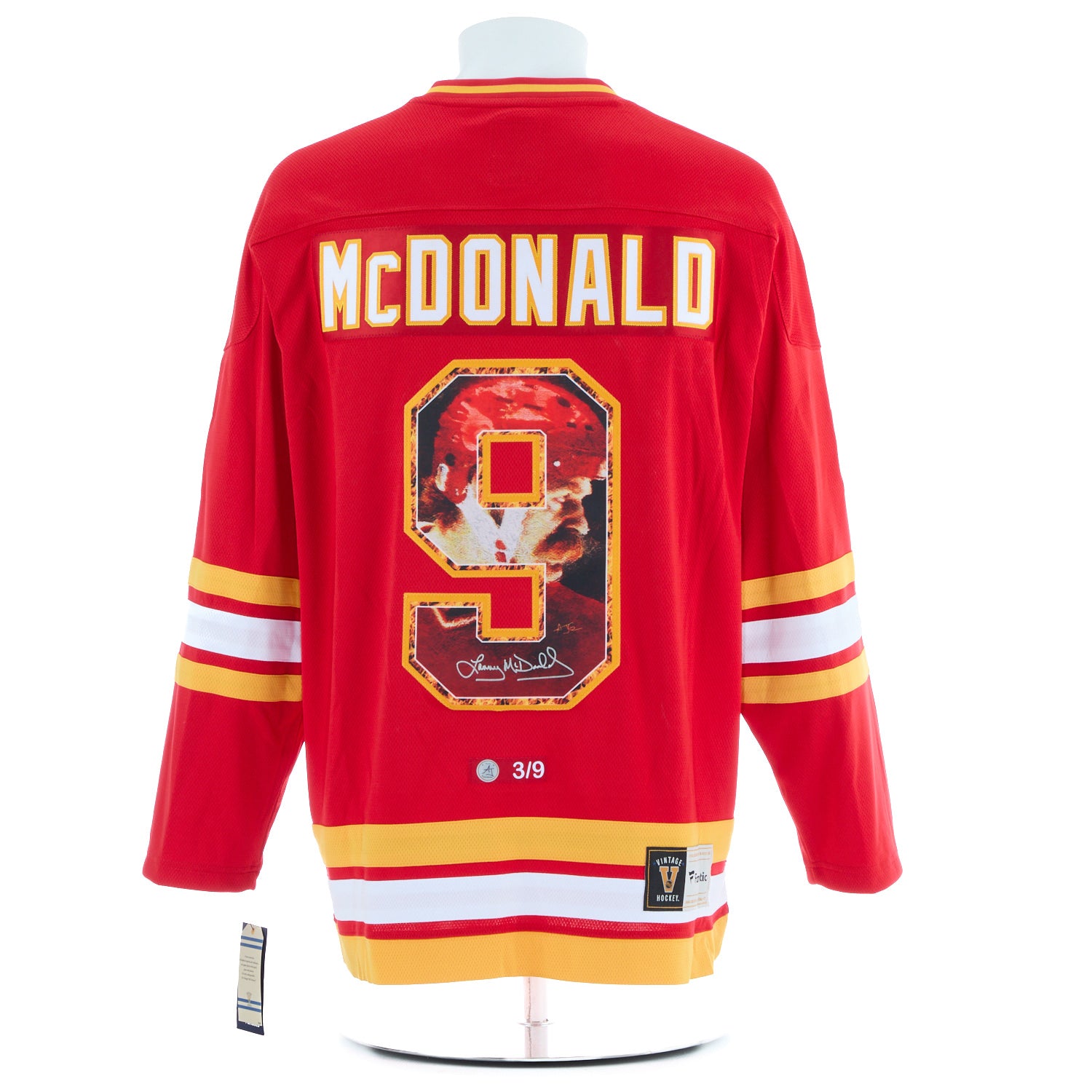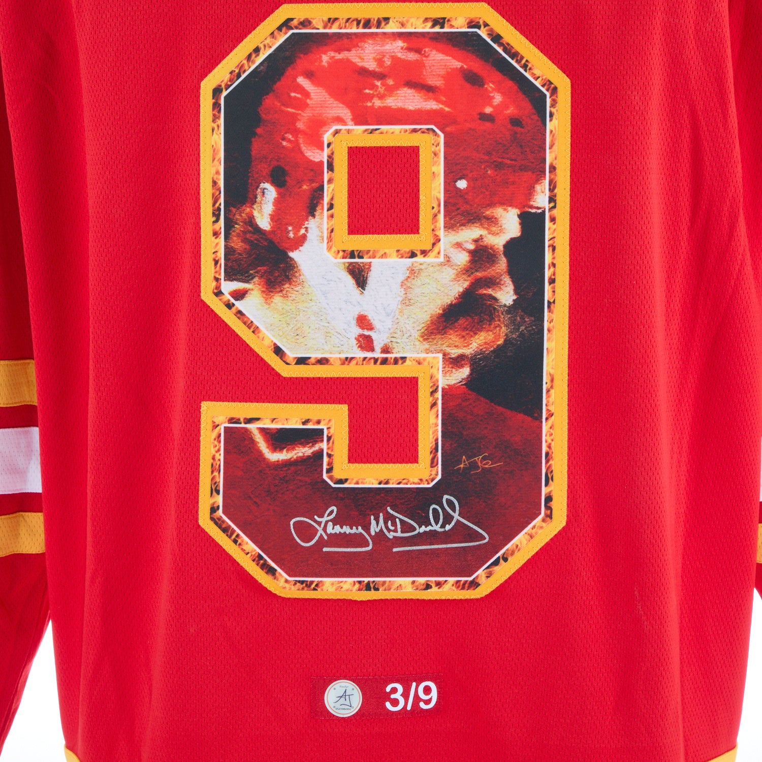 • This hockey jersey is hand-signed by Lanny McDonald.